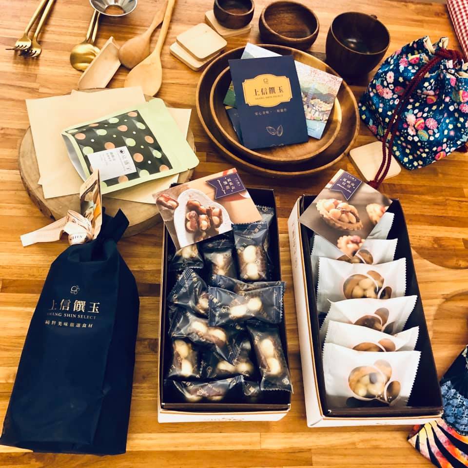 上信饌玉嚴選頂級食材,用慢火烘焙的夏威夷豆,結合椰棗,牛軋糖,果乾,太妃糖等不同基底發展而出的點心們,吃得到食物的原味與純粹。