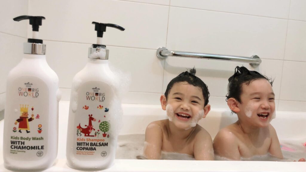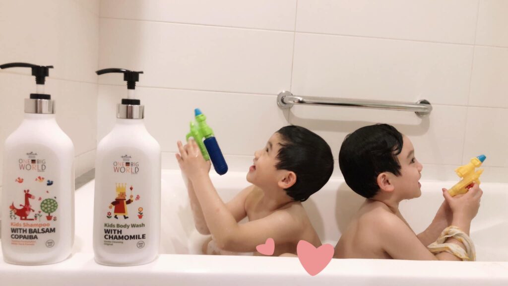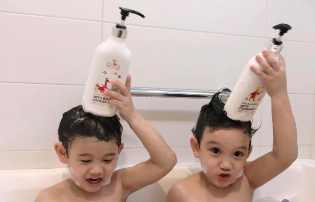 為了培養小孩的自理能力,最近我常常讓柚子帶著阿福洗澡,拿起可愛畫風的瓶罐,簡單的在浴缸中按壓二下沐浴露,接著才放溫水,每次我觀察水位差不多以後,轉頭發現他們已經迫不及待的脫光衣服,準備跳進充滿細緻綿密泡泡的浴缸裡了。加上他們家洗髮露添加 #不流淚配方,所以洗頭的泡泡碰到眼睛也不會不舒服。看著他們互相幫對方洗頭,也讓洗澡這件事彷彿在遊樂園玩樂般趣味。